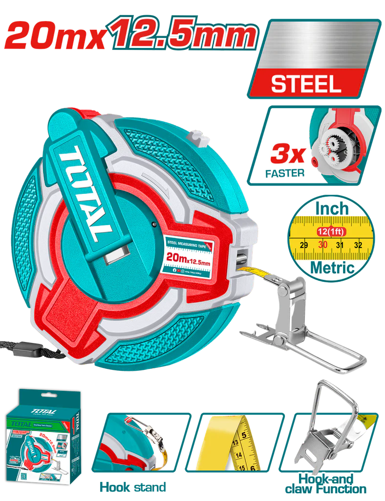 المادة: شريط القياس مصنوع من الصلب (الستيل).