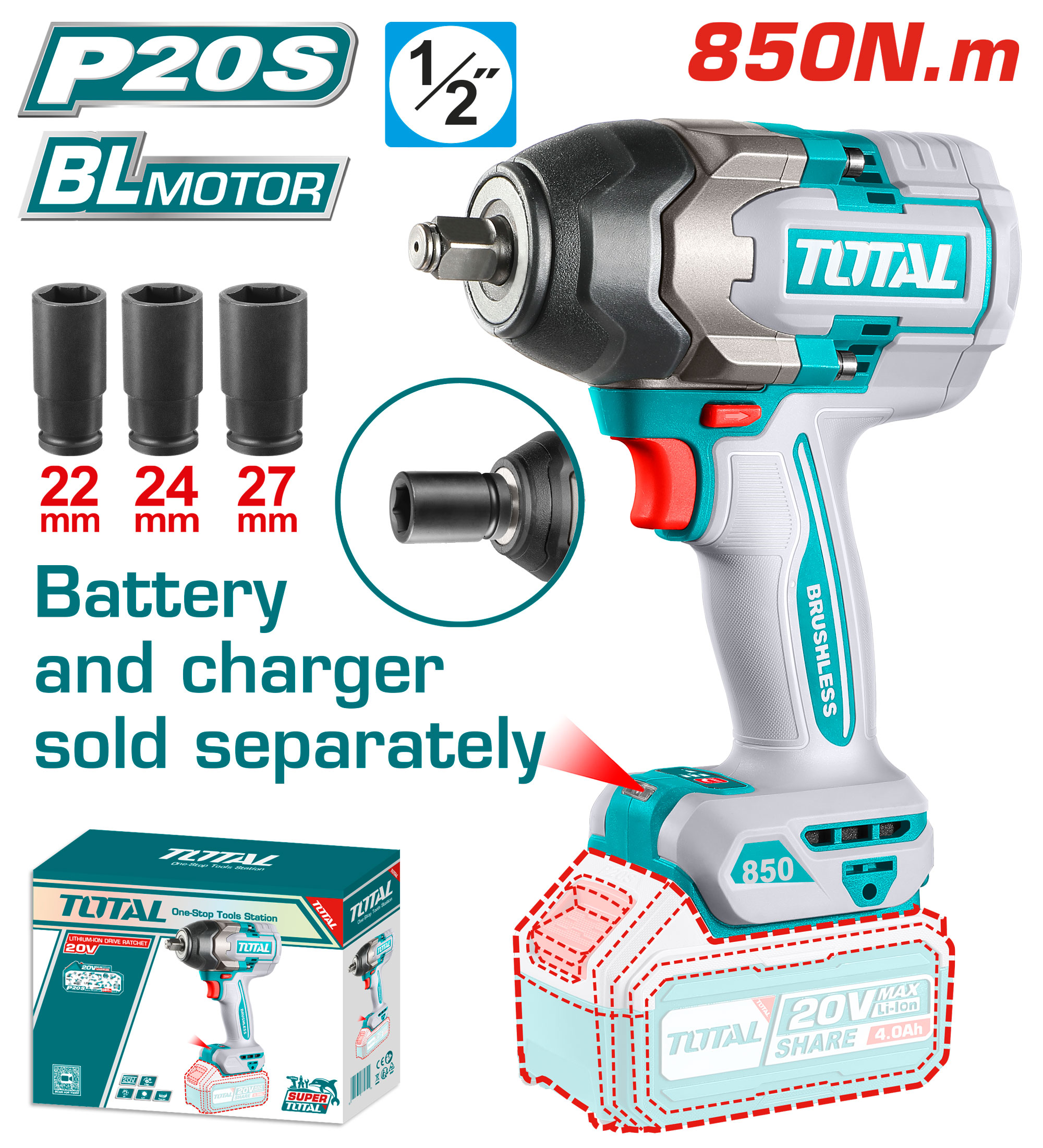دريل توتال TIWLI20851، (850) نيوتن، (20) فولت، بدون بطارية وشاحن