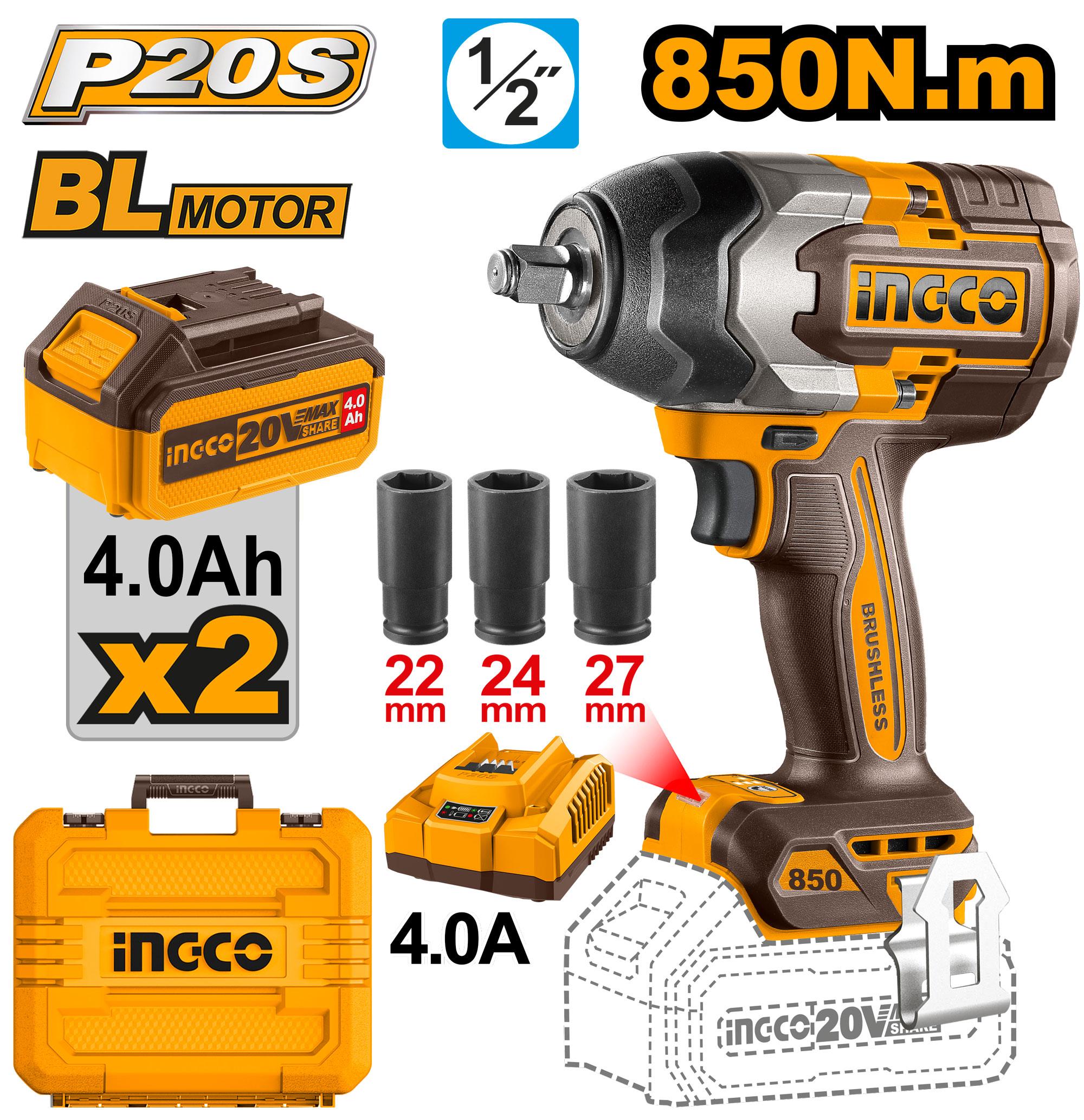 مفتاح ربط دقاق إنكو 20 فولت – محرك بدون فرشاة، عزم قوي 850 نيوتن متر