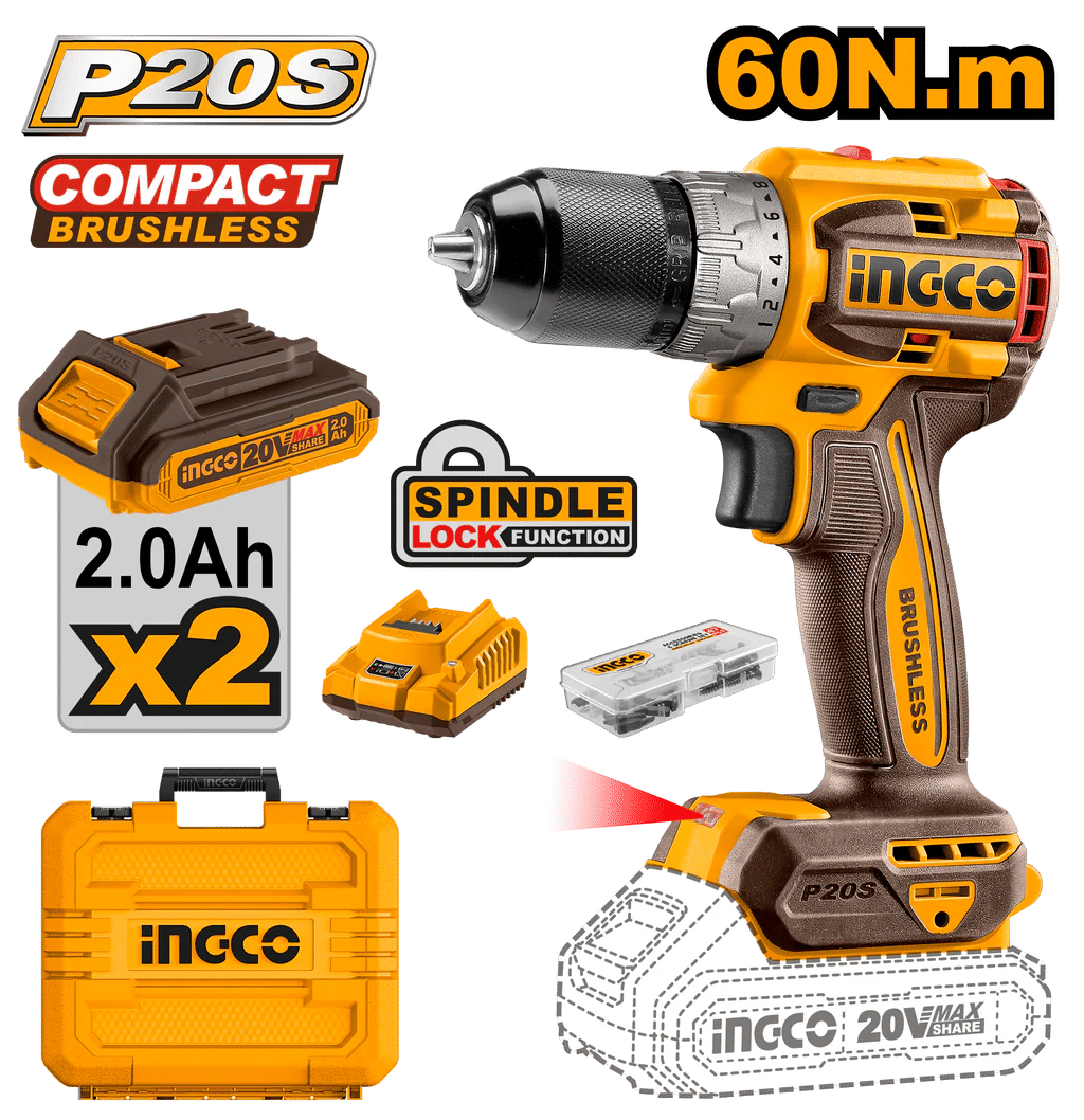 شنيور برشليس 20 فولت 60 نيوتن إنكو – CDLI20602، محرك بدون فحمات + عزم قوي