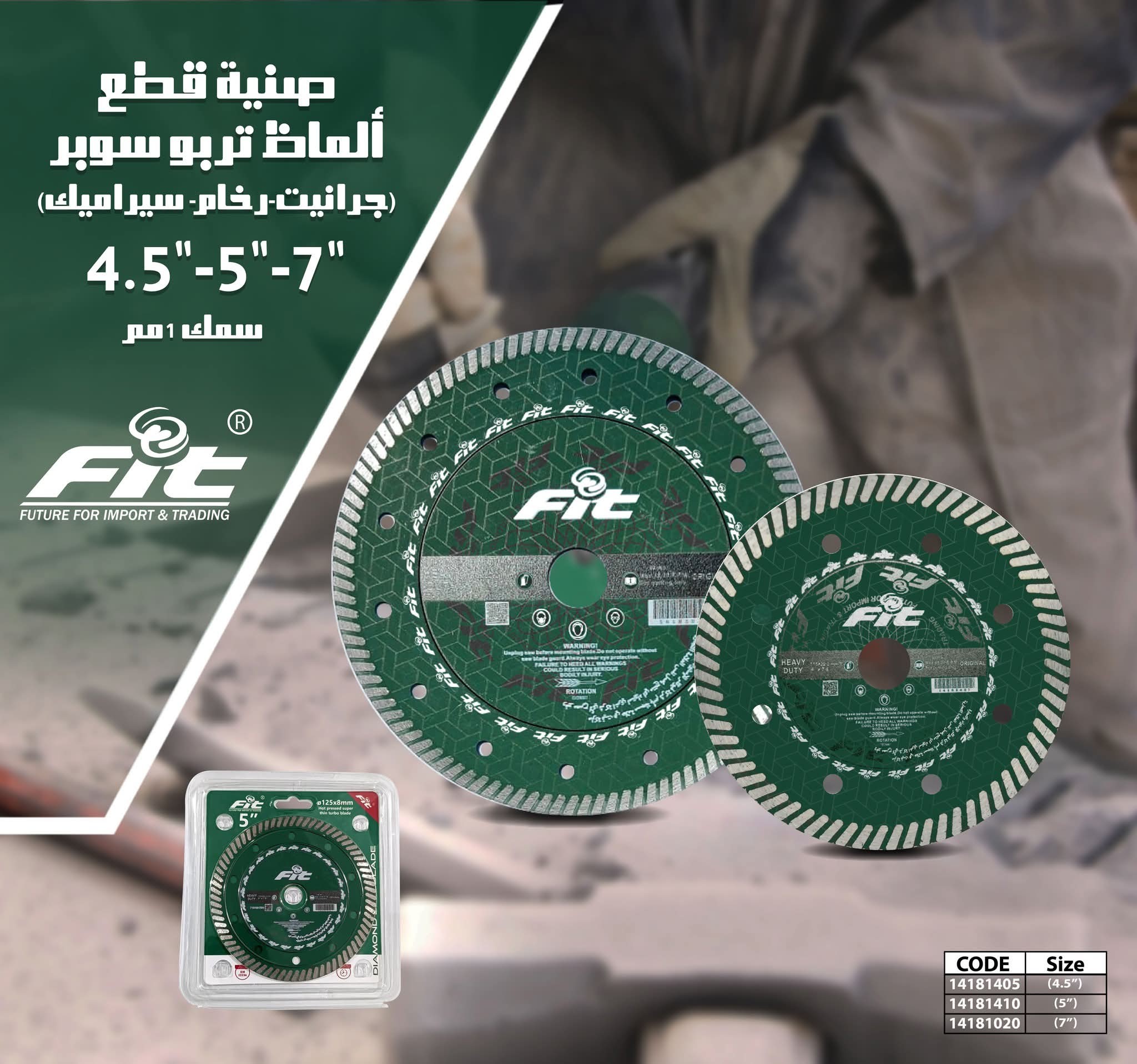 النوع: Turbo Diamond Cutting Disc — تصميم التربو يعطي سرعة قص أعلى ونتائج أنعم عند قطع المواد الصلبة مثل الجرانيت