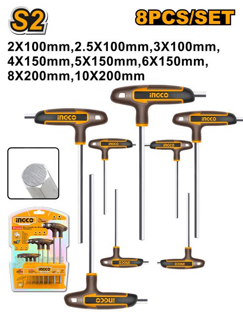 طقم مفاتيح سداسية بمقبض على شكل حرف T، ٨ قطع