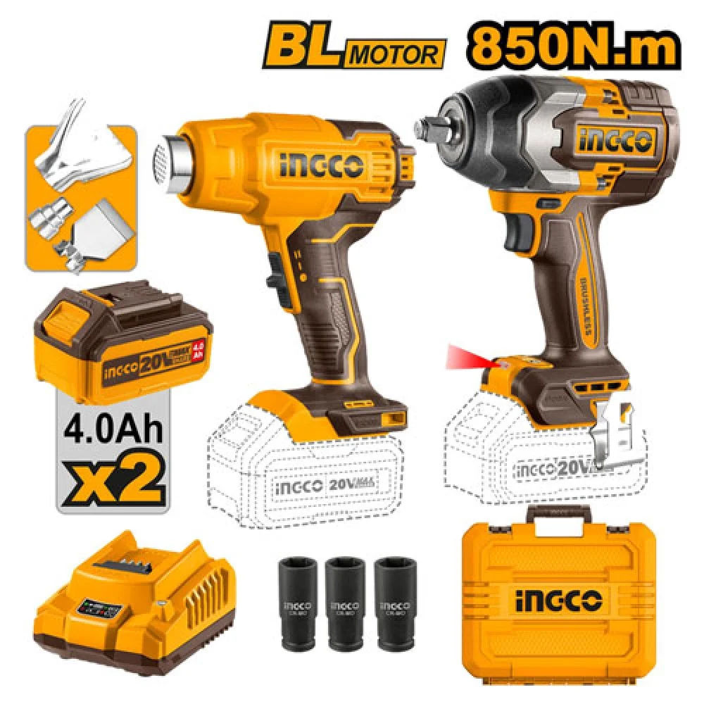 طقم دريل 850 نيوتن مع مسدس تسخين – إنكو – COSLI240489، شنيور قوي + هيت جن 20 فولت