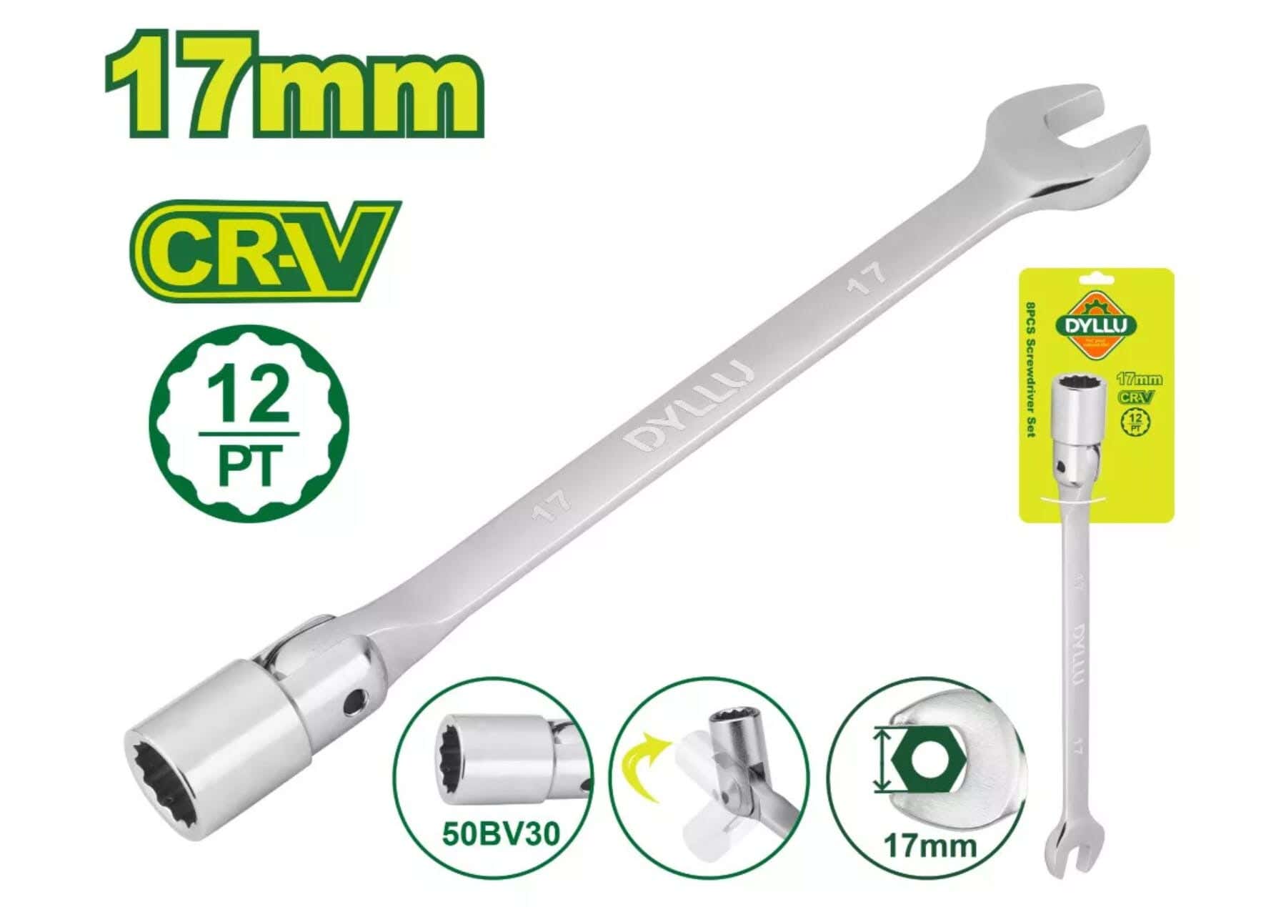 النوع: مفتاح ربط برأس دوار/متحرك وفتحة مفتوحة (Open End Swivel Head Socket Spanner Wrench).