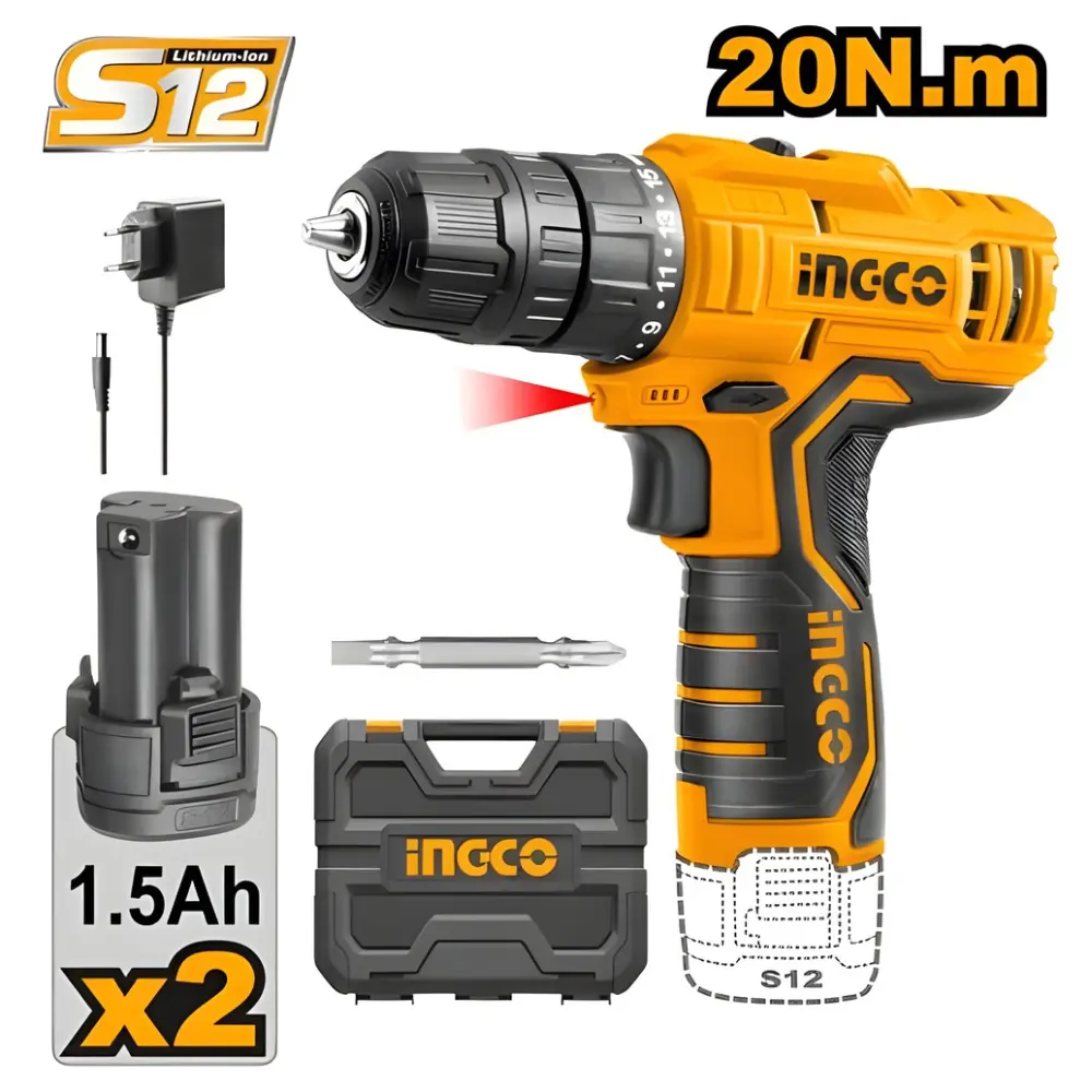 شنيور بطارية سرعات انكو 12 فولت، مع 2 بطارية وشاحن – CDLI12208