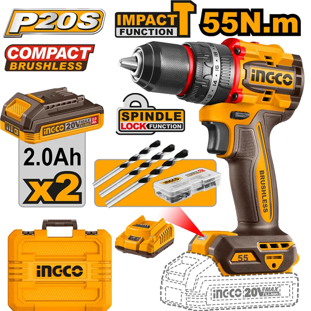 شنيور الشحن الدقاق اللاسلكي من انكو CIDLI20558 هو أداة احترافية قوية مصممة لأعمال الحفر، الربط والدقاق في مجموعة واسعة من المواد مثل الخشب، المعادن والطوب